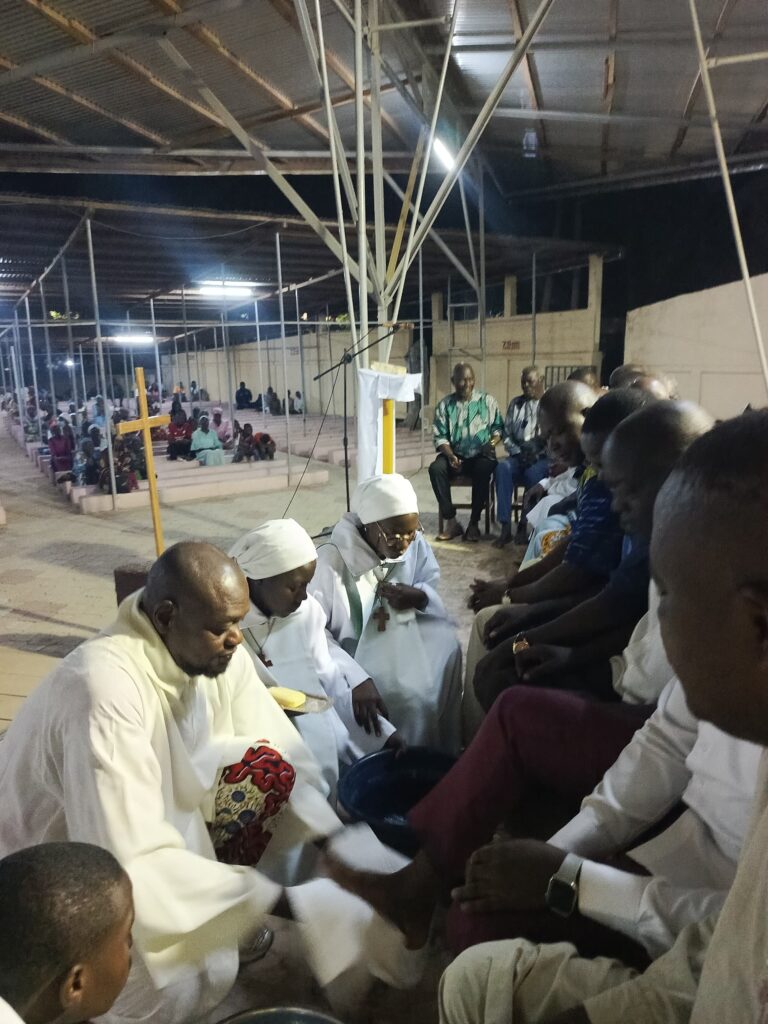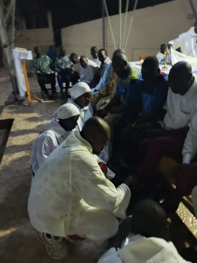 Dans un appel à la conversion intérieure, le célébrant a exhorté la communauté à tirer des enseignements du sacrifice du Christ : « Nous devons puiser dans le sacrifice de Jésus la force de transformer nos vies. » Il a également mis un accent particulier sur l’humilité, exhortant chacun à « imiter l’humilité du Christ », manifestée de manière éclatante dans le geste du lavement des pieds. Moment fort de la célébration, ce rite symbolique a profondément marqué l’assemblée. En reproduisant ce geste du Christ envers ses disciples, le prêtre a rappelé que le service des autres est au cœur de la vie chrétienne.