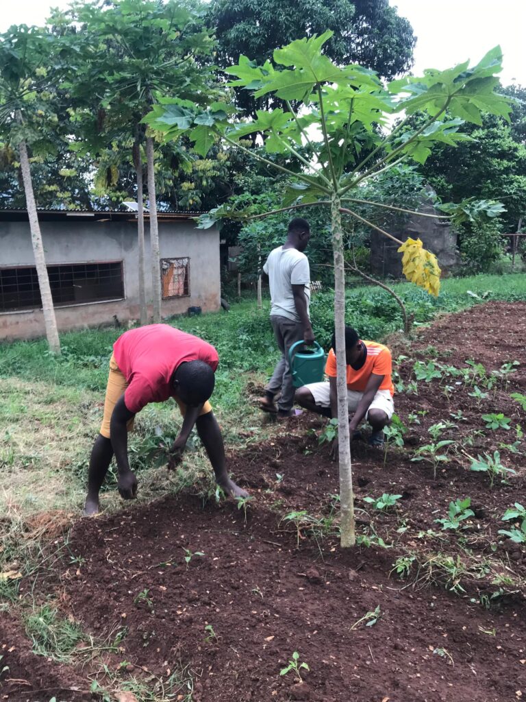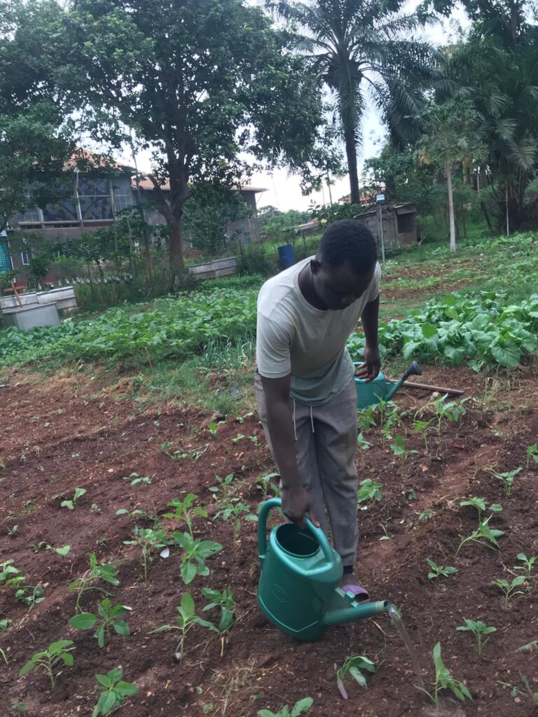 Dans un élan collectif, chacun s’active avec le sourire. Certains nettoient les espaces communs, d’autres s’occupent du jardin ou de l’élevage. Le jardin, justement, semble répondre à cette attention quotidienne : verdoyant et bien entretenu, il reflète le soin et la discipline de ses jardiniers. À proximité, les porcs accueillent leur maître par des grognements familiers, tandis que les poussins s’agitent à l’heure du repas.