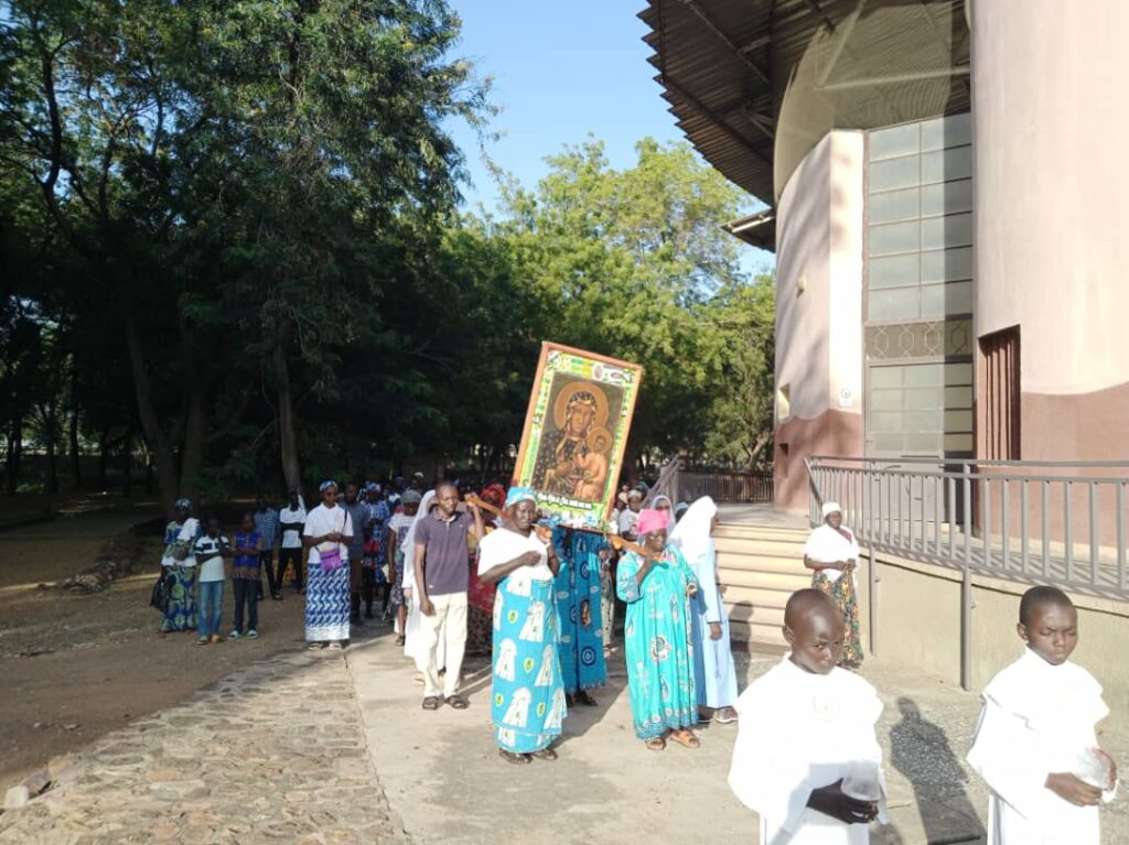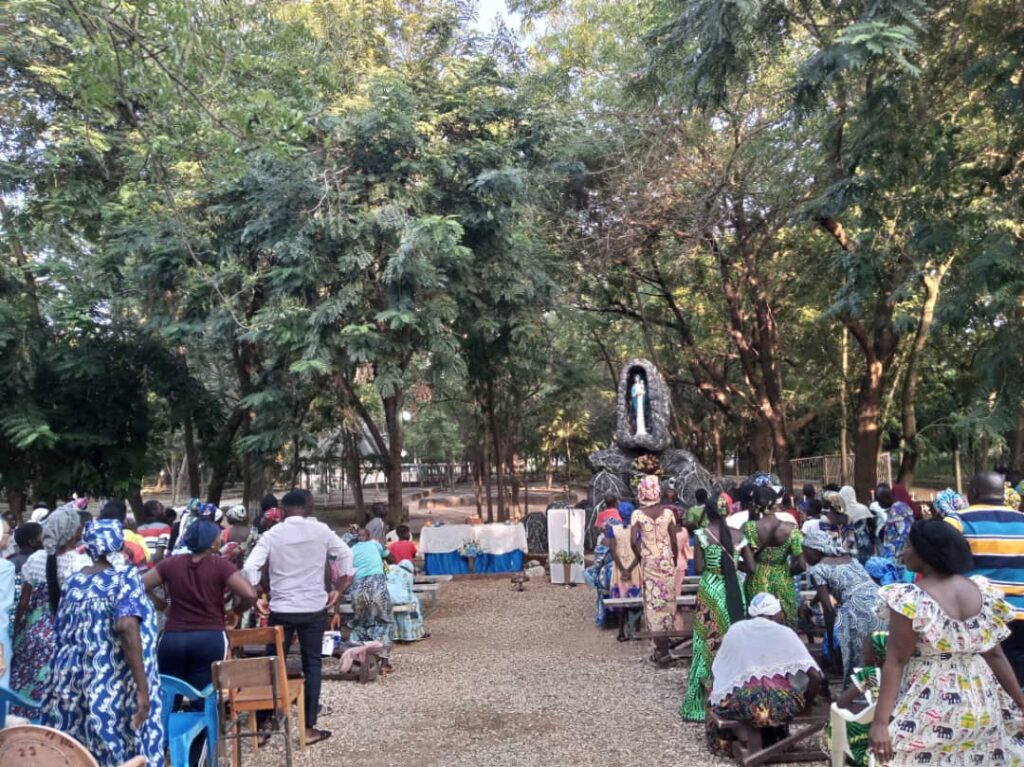 Cette célébration a connu la participation active de plusieurs groupes et mouvements à dévotion mariale, parmi lesquels la Légion de Marie, les Femmes Catholiques, les Femmes de Charité et le Chapelet Vivant. Chacun, à sa manière, a apporté sa voix et sa ferveur à cette belle symphonie de prière. Les chants marials, portés par la chorale, ont enveloppé le sanctuaire d’une atmosphère de paix et de joie, tandis que les fidèles rendaient grâce à Dieu pour le mois écoulé, placé sous le manteau protecteur de la Mère de son Fils.